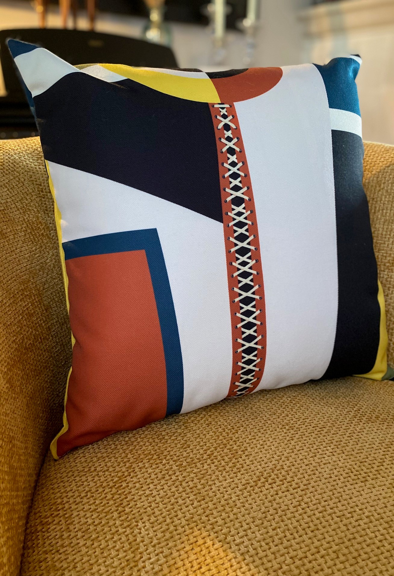 Coussin confectionné dans notre atelier à Aytré